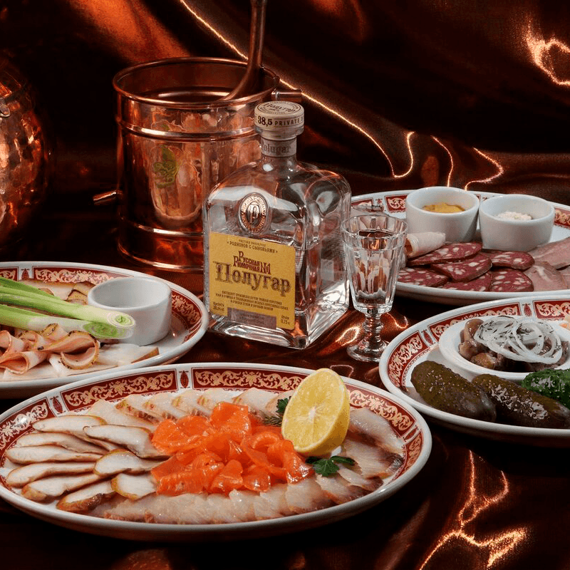 ❗️ Что брать: рюмку водки — от 170₽ (и до 790₽) и легендарную «Закуску № 1» — плато с бутербродами: с бужениной, салом, сельдью, килькой и семгой (362₽).